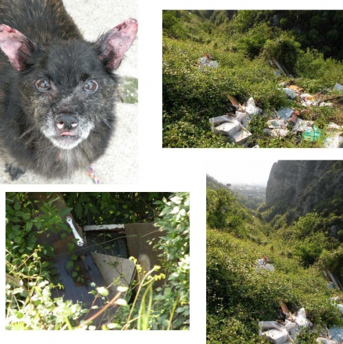 Sono Gianna, trovata puzzolente in un dirupo, tipo discarica a Piano di Sorrento, dove l' erba era molto alta, unghia lunghissime tipo uncino, forfora sulla pelle, orecchie senza pelo...comunque tutto ciò che un cane con Leishmania avanzata e non curata dovrebbe avere.