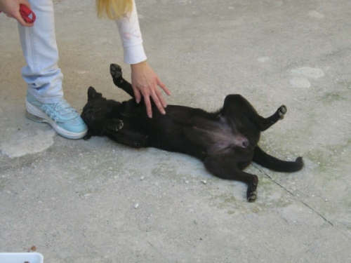Memole è una dolcissima e simpaticissima cucciola tipo pincher di circa 4/5 mesi. E'stata abbandonata in provincia di Napoli, l'abbiamo trovata in prossimità di una strada a scorrimento veloce, dove cercava di attraversare, sarebbe finita di sicuro sotto ad una macchina.. era spaventatissima e aveva la codina tra le gambe, ci siamo avvicinate, tremava, ma poi le abbiamo fatto un pò di coccole ed è subito salita in macchina. Portata a casa abbiamo scoperto che è una cucciola dolcissima, socievole e giocherellona, in pochi minuti ha riempito la nostra casa di allegria!