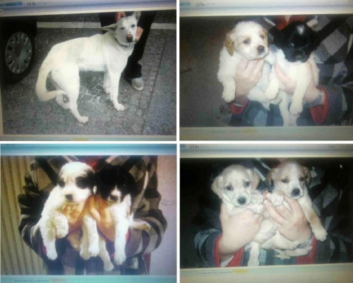 Eccoli qui, cosi dolci e indifesi in un paese dove ti guardano come se fossi un' aliena se fai una accarezza ad un cane.... c'era una vecchina che ci diceva di prenderli tutti quanti, c'erano tantissimi canucci di taglia piccola maschi, femmine .. non so quanti ne abbiamo contati, due padronali ma naturalmente lasciati in giro in balia delle macchine che sfrecciavano come pazzi e la maggior parte figli di randagi....che pena... I cucciolini erano sotto una grondaia, bagnati dalla pioggia, spero solo che resistano, ora li abbiamo portati al caldo sempre da questo nostro Angelo che non ci dice mai di no? ma sta tenendo anche Red e Lollo (i due canucci destinati al canile) e i due della famosa cucciolata di 15 di Natale, sono troppo lo so, ma che dobbiamo fare????