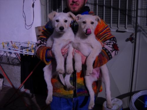 Queste meraviglie sono 3 femmine ed un maschietto bianco,sono figli di una pastora tedesca pura scappata durante il terremoto dapadroni Rumeni e poi tornata dopo due mesi con la pancia...Loro sono stati carinissimi perche li hanno tenuti, curati e messi al sicuro...ma devono andare ad abitare nella casetta nuova che gli daranno visto che la loroe' stata dichiarata inagibile e non sanno dove mettersi queste 4 meravigliealtrimenti se li sarebbero tenuti tutti !!!