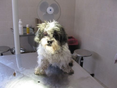 Nell'orrido canile sanitario abruzzese dove vado ogni tanto e' arrivata questa microba vecchiettina, una shitzu di circa 10 anni, quasi non vedente!!