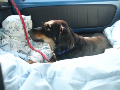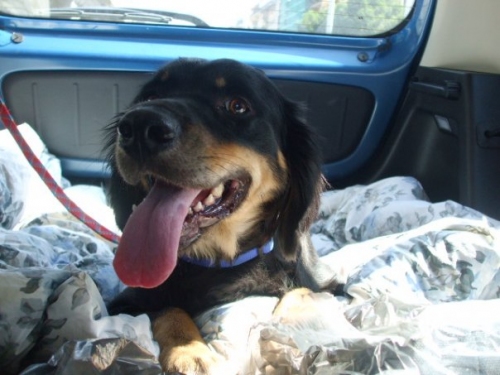 Cagnolina di non più di due anni di età, denti bianchi da cucciolona, due occhietti vispi, e tanto allegra. In macchina è stata buonissima, non si è mossa.