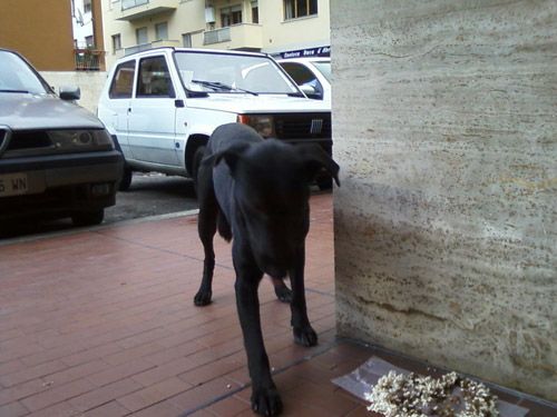 Teramo 25/12/2011. Sono un randagio sì, e mi hanno abbandonato nel periodo peggiore dell’anno: con questo freddo e la pioggia, tutti i miei amici universitari e i loro cani tornati nelle loro città e i botti di Capodanno in arrivo… Sennò qui starei benissimo: mi danno da mangiare, ho una coperta su cui dormire, e sono molto socievole, mi piacciono tutti i cani, sia maschi che femmine, sono giocherellone, affettuoso, vivacissimo, il mio motto è: ogni cane può essere un buon amico con cui fare una corsetta e sgranchirsi le zampe!
