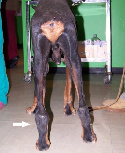 Ha un gonfiore pazzesco alla gampa posteriore, arthrosi da paura. Non ho fatto fare nessuna lastra perchè tanto, non ci serve, si vede bene anche a 4 metri di distanza.