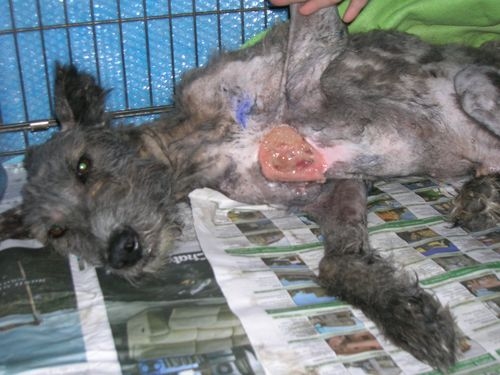 Salve,questo è Argo, viveva legato ad una catena in queste condizioni. La sua situazione clinica, diversamente da quanto appare, non ècosì preoccupante: è fortemente anemico, ha Ehrlichia e Rickettsia, la PCR per Leishmania è dubbia, ha una piaga di notevoli dimensioni sul petto che al momento del ritrovamento era ricoperta da larve, è gravemente sotto peso e ha le orecchie e la coda tagliate.... segni di evidenti e durature privazionie assenze di cura. Gli organi interni sono però in buone condizioni e lui risponde alle cure, inoltre mangia moltissimo il che fa supporre che il cibo non gli venisse proprio dato.... Necessita di una persona affettuosa e disponibile in grado e con la voglia di aiutarlo a risolvere i suoi problemi legati ad anni di maltrattamenti.Grazie per l'attenzione.