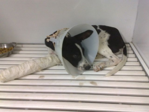 Ciao a tutti. Ricordate il piccolo Angioletto, trovato dai vigili urbani con le zampine spezzate, poi perso dagli stessi vigili con tanto di museruola per alcuni giorni... e, ovviamente, terrorizzato!? E' ancora in clinica, chiuso nella sua gabbietta. E' stato operato dopo tanta sofferenza dovuta non solo alle zampe spezzate ma anche all'infezione che aveva probabilmente anche perchè era andato trascinandosi in giro forzando sulle zampine... Il vet. dice che l'operazione è andata bene e che tra circa una settimana si rimetterà... Per lui si cerca ancora un'adozione. Ricordo che ha circa 4 mesi, max 5, che diventerà sui 20 kg, che è dolcissimo ma anche spaventato... e che ha bisogno di tantissimo amore. E' adottabile ovunque, al momento si trova in prov. di Ragusa. Allego foto e incrocio le zampe!.