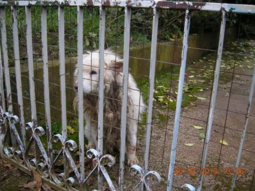 SAMOIEDO DI RAZZA che era bellissimo, ma, purtroppo, trascurato dai proprietari per problemi familiari, si è ridotto così......