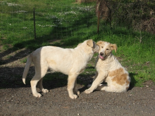 Questi 3 derivati maremmanini di 4 mesi, 25 kg, futura taglia grande cercano urgentemente adozione o anche stallo separatamente.