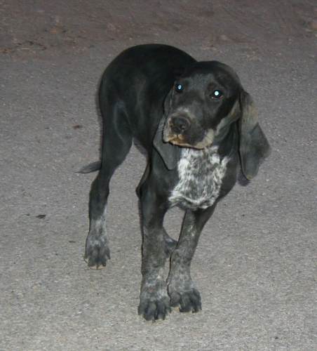 Peccato che nella regione ci saranno almeno una trentina di figli suoi per non parlare dei nipoti! Cercheremo di farla sterilizzare al più presto... ora è necessario trovare una casa ai tre cuccioli derivati corso (lei si accoppia regolarmente con un cane corso che vive da queste parti) e i due cuccioli che ha avuto con un meticcio simile a lei, tipo cane da caccia. La piccola della foto è una di questi ultimi due.