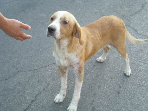Questo tesoro giovane, forse un anno o poco più, di taglia media, è malato di rogna.......vive in un posto per strada molto sporco e tutto quello che possiamo offrire lui è un pò di cibo e le prime cure per il trattamento della rogna.....ma sappiamo perfettamente che un cane malato non dovrebbe più stare per strada. Bobby ha bisogno di cure adeguate.........e' un cane buonissimo anche verso gli altri cani. Chiede solo carezze e ci guarda con degli occhi, che non credo, dopo cheli avreste visti, ci sia altro da aggiungere........ Sono nuovamente qui a pregarvi di aiutarmi a portarlo via di lì, perchè non ho più spazio da me, ne di stalli amici e Bobby potrebbe anche essere a rischio morte.......sappiamo ormai l'odio verso i randagi, ma a maggior ragione se sono malati, perchè la gente crede di essere contagiata.