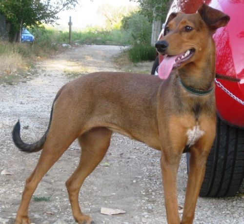Betty è molto simile ad un whippet, ma un po’ più grande, molto dolce, ha circa 10 mesi e va d’accordo anche con i gatti.