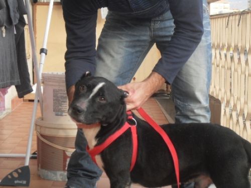 Un mese fa ho trovato un cane denutrito abbandonato in una fossa, il cane pesava 8 chili è stato curato, adesso gode di buona salute. Purtroppo non posso tenerlo perchè in casa ho già tre cani e due gatti. Il cucciolo è un pitbull American Staffordshire Terrier ha circa un anno e mezzo di taglia piccola, ha un carattere buono e giocherellone ama stare in compagnia con gli altri animali e sopratutto con i bambini.