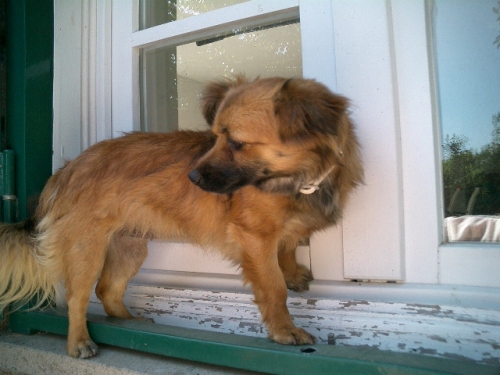 Questa è Eleonora, grande meno di un bassotto, ma con l'aria del volpino. Lho incontrata lo scorso anno a ferragosto abbandonata da una zingara in un negozio di animali al nuovo salario, aveva la gastroenterite e si era fatta un paio di settimane in clinica dove l'avevano curata con uno strano sistema di bombardamento di vaccini. Comunque era guarita perfettamente e non è mai stata male. Ha esattamente 1 anno, l'ho fatta sterilizzare, microcippare, ha tutti i vaccini in regola sverminazioni antipulti etc..... e pesa meno di 5 kg.