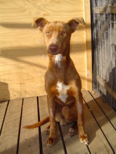 Biagio è un meticcio di circa un anno, taglia medio piccola (peserà all'incirca 15 chili... ovviamente in condizioni normali, al momento è uno scheletro), è colore miele scuro, il musetto allungato, le orecchie all'insù e un adorabile nasino rosa scuro.