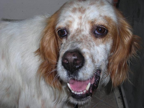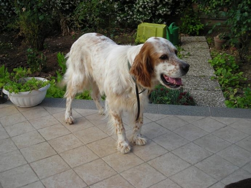 Questa setterina ha urgente bisogno di una nuova casa. Infatti il padrone, gravemente malato, ha dovuto lasciare la sua casa di campagna e che fino ad oggi non sono riusciti a trovare qualcuno disponibile ad adottare la loro setter femmina, ora se ne sta occupando un vicino di casa.